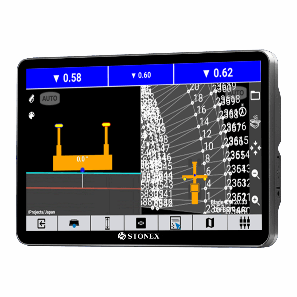 The 1D system is the easiest to install and use. It allows you to manage the digging and vertical leveling phases quickly and precisely. It is a perfect starting point for the user approaching the world of machine control for the first time. Suitable for excavators and mini excavators. You can always check the bucket position from the screen in real time. Complex tasks such as underwater digging and blind digging are simplified because you can always keep an eye on the bucket on the screen. You can work with different height references such as an existing surface or a rotating laser.